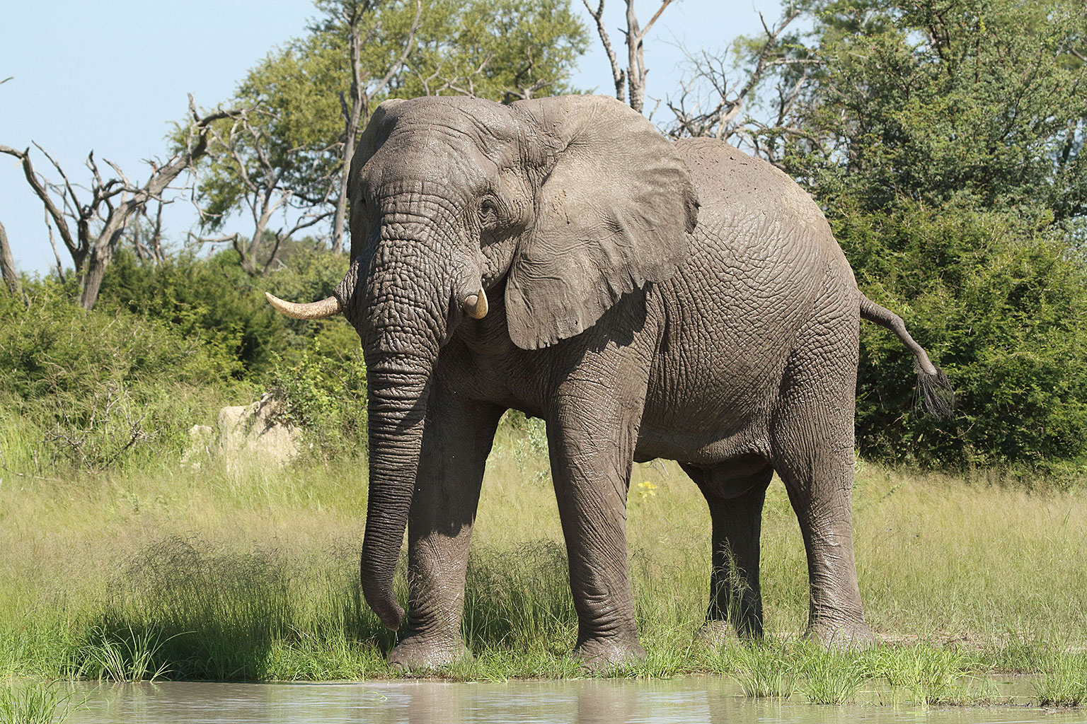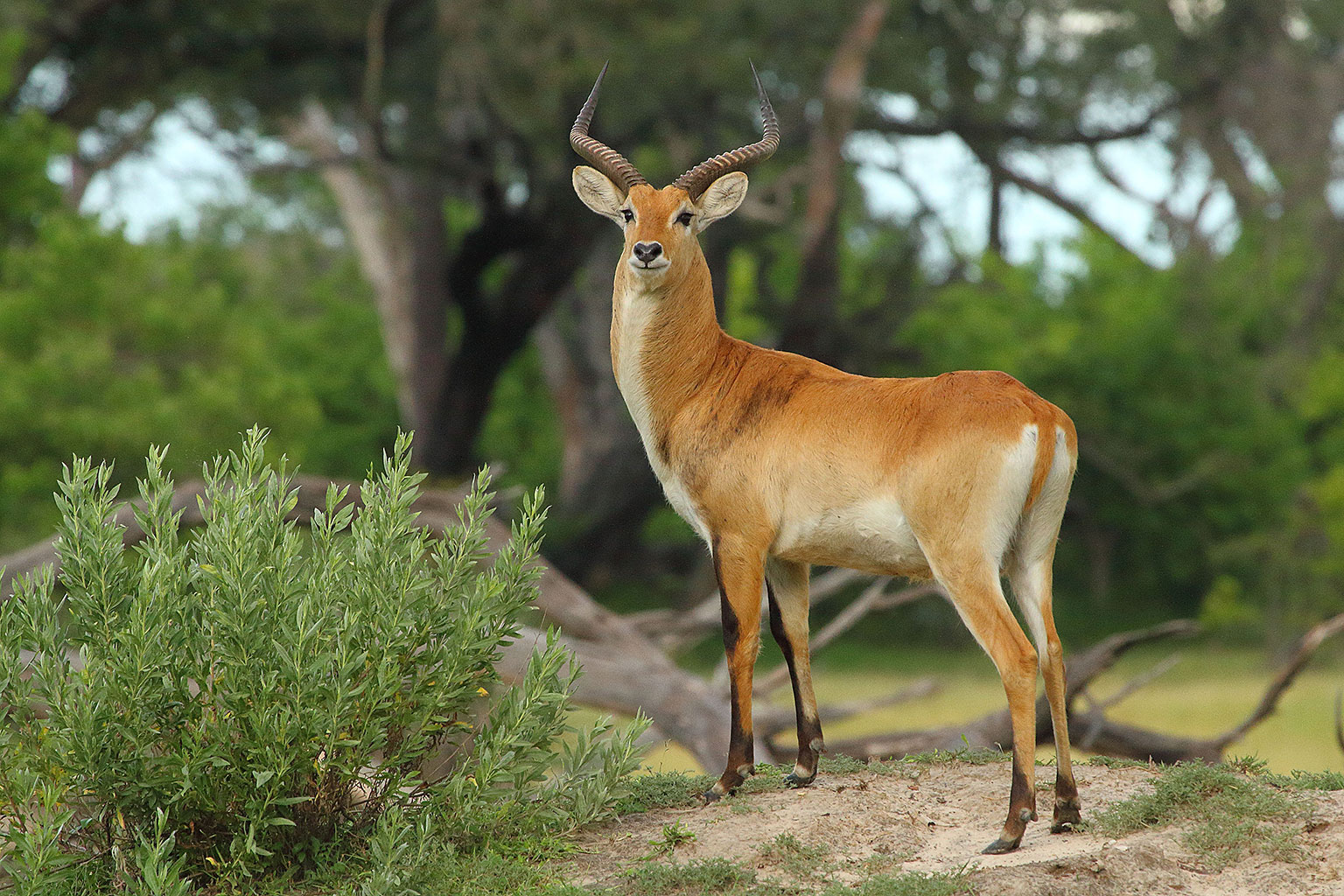 Tsessebe, red lechwe, impala, kudu, bushbuck, waterbuck and many other antelope are the typical prey of the leopard, lion and other carnivores which are commonly found here. Giraffes and buffalo feed on the palm islands, with animals such as warthog and hippopotamus that wander across the landscape in their search for nutritious grasses. Small creatures such as banded mongoose, African civet and rusty-spotted genet also abound here, adding an interesting aspect to the night drives.