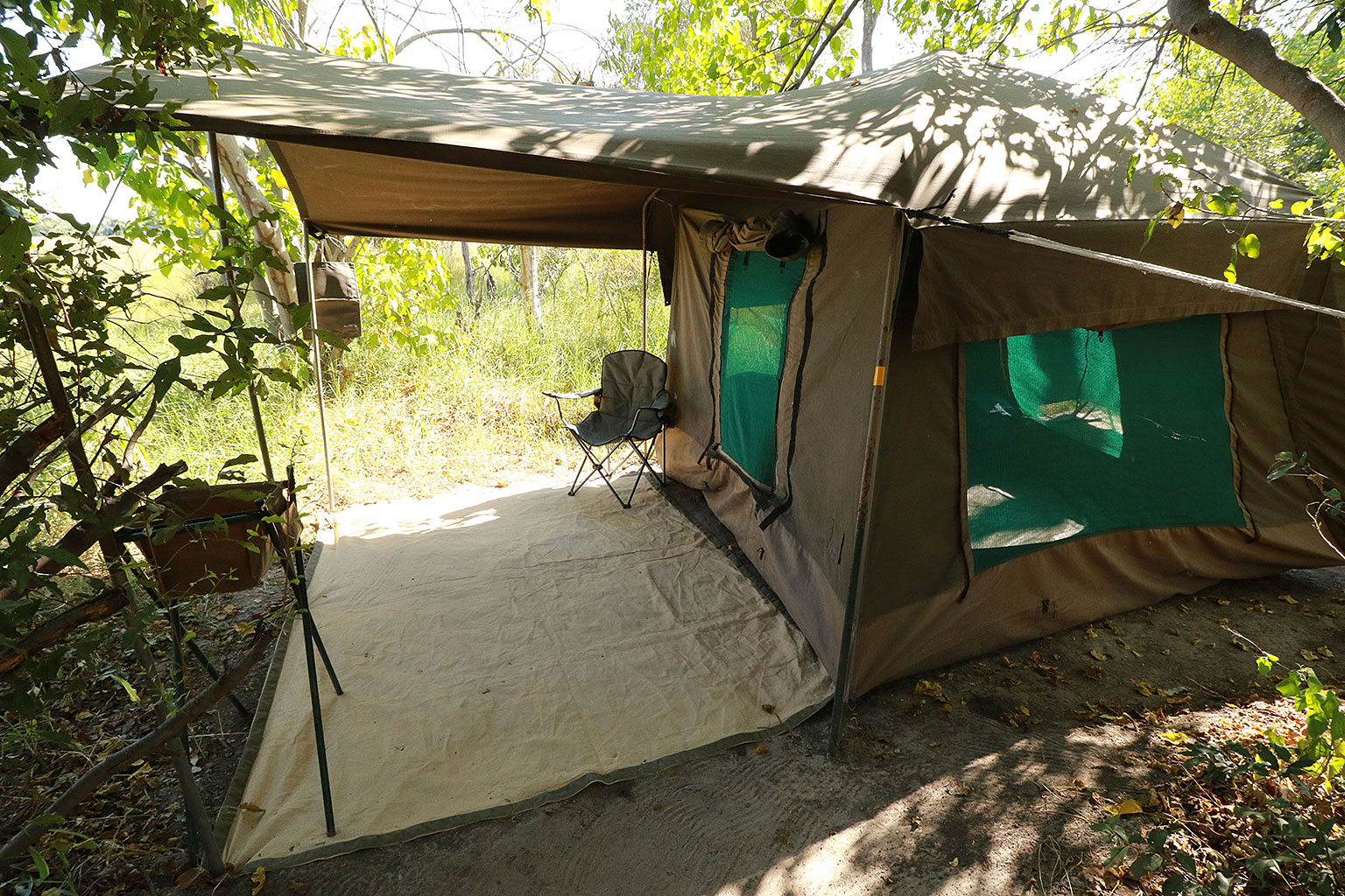 Tall palm trees dot the landscape, with the skeletons of long-dead leadwood trees framing the African sunset. Elephants and lions call in the night and the spotted hyena’s range silently around the unfenced camp. African scops-owls and other nocturnal birds add to this chorus, rousing something primal from an earlier time in mans history…
