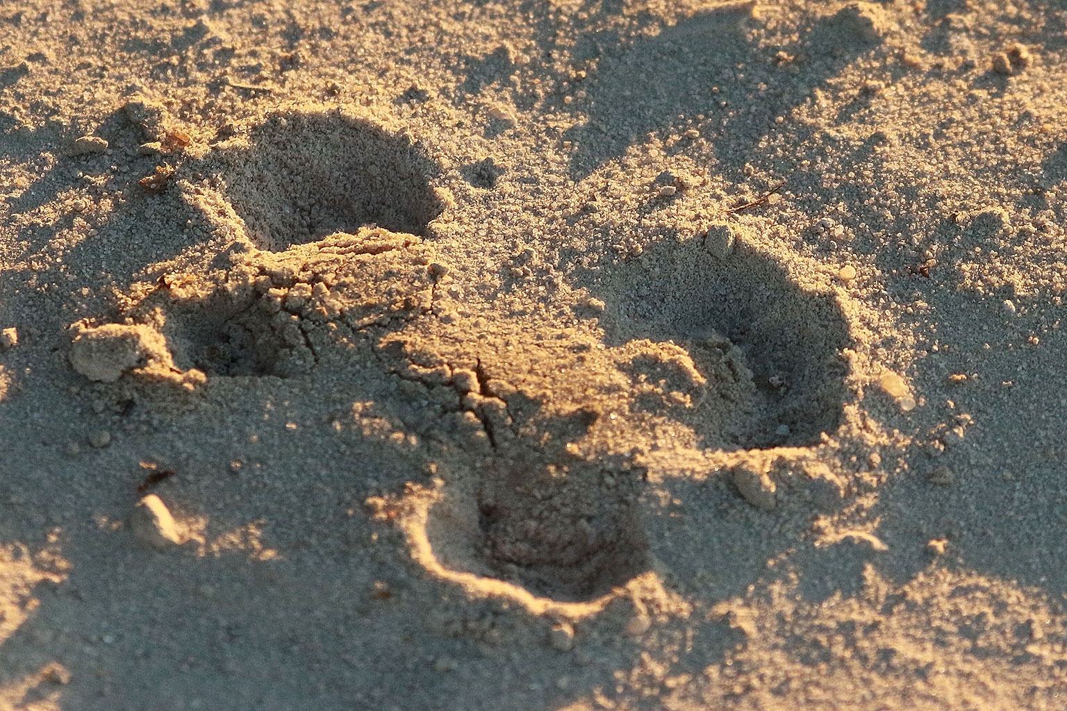 A beautifully marked bush katydid and a chacma baboon track in the soft wet sand